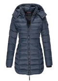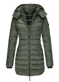 The Alessia winter jacket with padding is the perfect choice to tackle winter in style and comfort. Its mid-length, modern design with a tailored silhouette offers an elegant fit, while the lightweight padding provides reliable warmth. The adjustable hood additionally protects against wind and weather, making the jacket an ideal companion on cold days. Thanks to durable material, it is suitable for both everyday wear and winter outings. An essential garment that combines fashion and functionality.