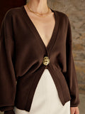 Timeless class with noble shimmer – the cardigan with golden buttons