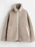 Women's Teddy Coat - Soft Shearling Look - Oversize Fit - High Collar - Zipper Closure. Stay warm and stylish with this delightful teddy coat. The soft shearling look, oversize fit, and high collar make it the perfect choice for cold days.