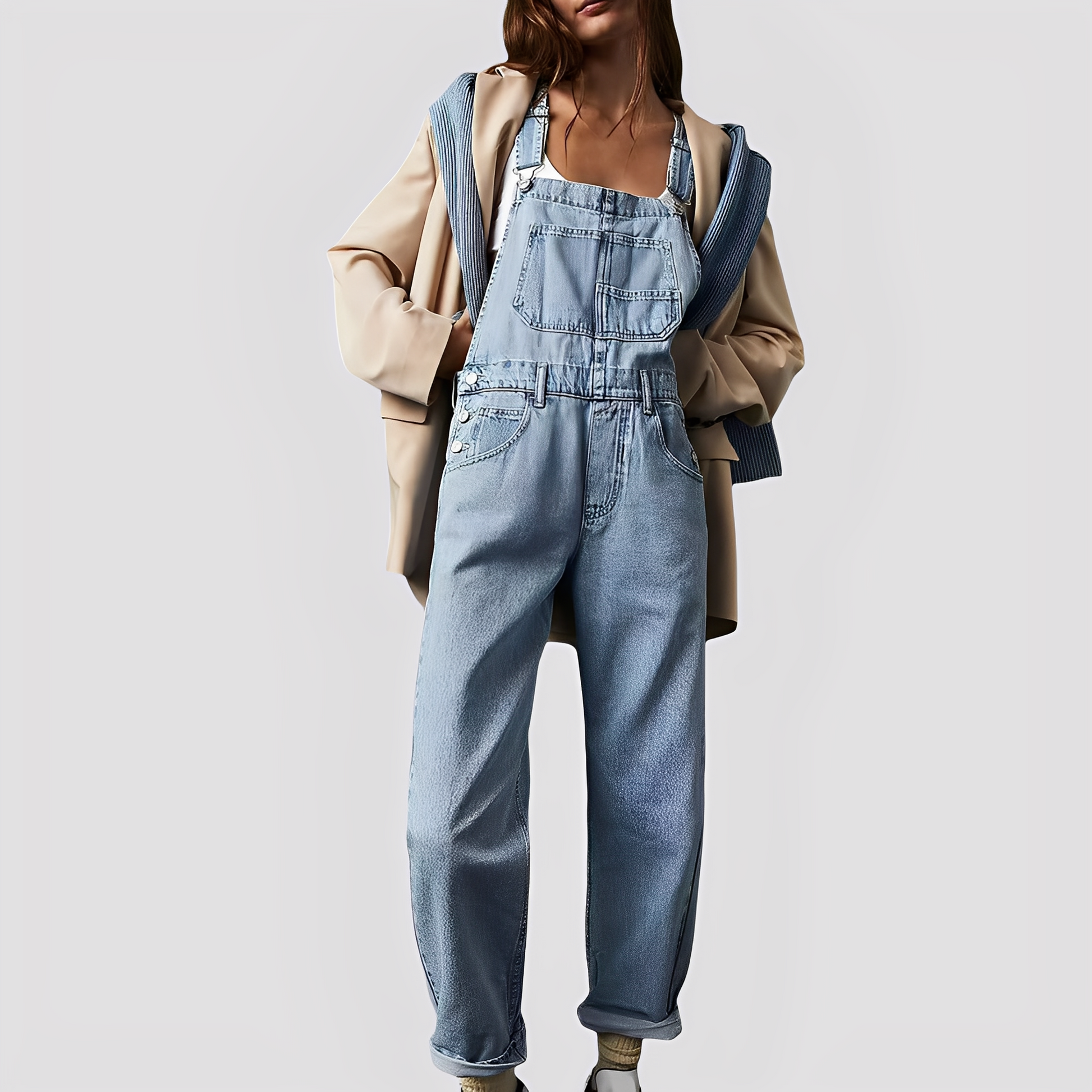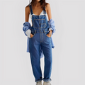 The Mildred denim overalls impress with their relaxed fit and high-quality denim material, ensuring comfort and durability. With practical pockets and adjustable straps, they offer functionality and flexibility. Their cool, casual look makes them ideal for leisure, outings, or relaxed everyday wear.