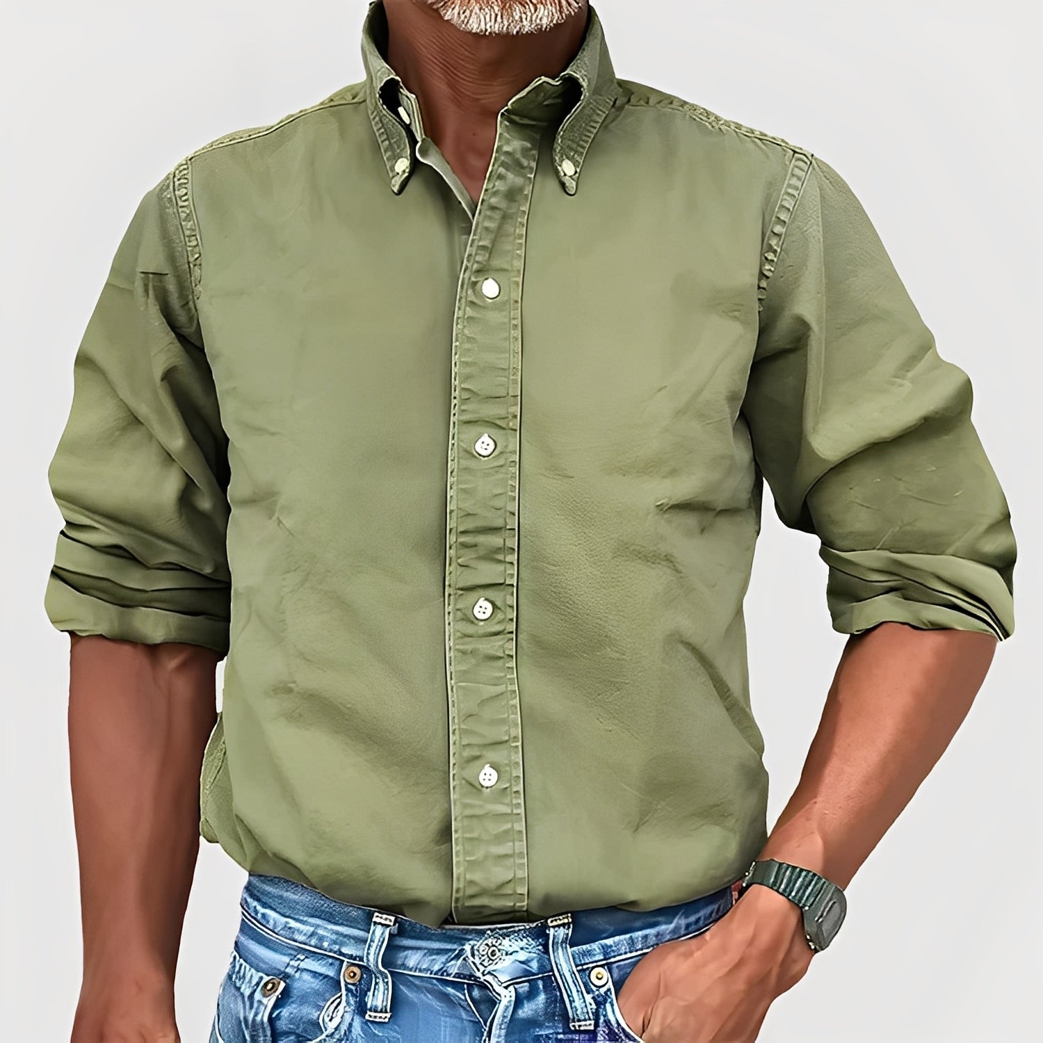 Ronald - Retro Reverse Long Sleeve Shirt for Men