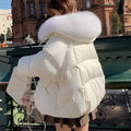 Victoria - elegant windbreaker down jacket with fur collar for women